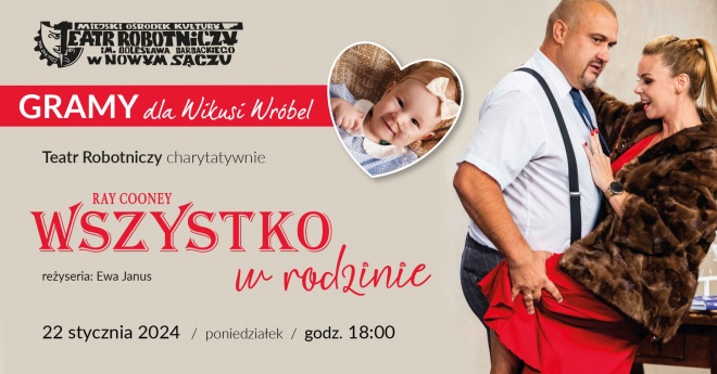 Kolejna propozycją będzie spektakl „Wszystko w Rodzinie” w wykonaniu Teatru Robotniczego im. Bolesława Barbackiego, który odbędzie się 22 stycznia. Dochód ze sprzedaży cegiełek zostanie przeznaczony na wsparcie Wikusi.
