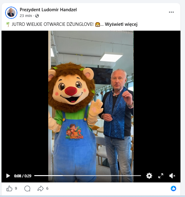 W mediach społecznościowych pojawiło się nagranie, w którym Prezydent Nowego Sącza Ludomir Handzel zapowiada otwarcie sali zabaw w Nowym Sączu. Wystąpienie ma charakter bezpośredniej zachęty do odwiedzenia nowego miejsca. Na pierwszy rzut oka to element promocji lokalnej inicjatywy. Jednak forma przekazu sprawia, że sprawa przestaje być oczywista. Bo nie chodzi tylko o obecność prezydenta na sali zabaw. Chodzi o udział w komunikacie, który przypomina reklamę biznesu.