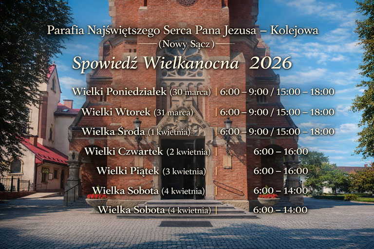 Poniżej publikujemy szczegółowy harmonogram spowiedzi wielkanocnej w Nowym Sączu na 2026 rok.