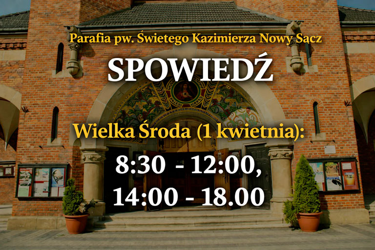 Harmonogram spowiedzi w kościołach Nowego Sącza – Wielki Tydzień 2026